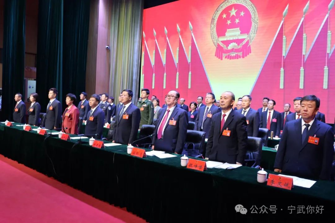 大会会场。县人民剧院内简朴庄严,主席台帷幕正中的国徽在鲜艳的红旗映衬下熠熠生辉。会场内“坚定信心、接续奋斗,为推动中国式现代化‘忻州实践’作出宁武贡献!”的巨幅标语,提振信心、催人奋进。本次大会的执行主席高建文、赵亚峰、靳峰、郑建国、杨丽琴、魏峥嵘、闫凯亮、李文斌、王继宁、张永明、周鑫、葛俊峰、王中英、王凌云、辛继军、张海青在主席台就座。大会主席团其他成员在主席台就座。