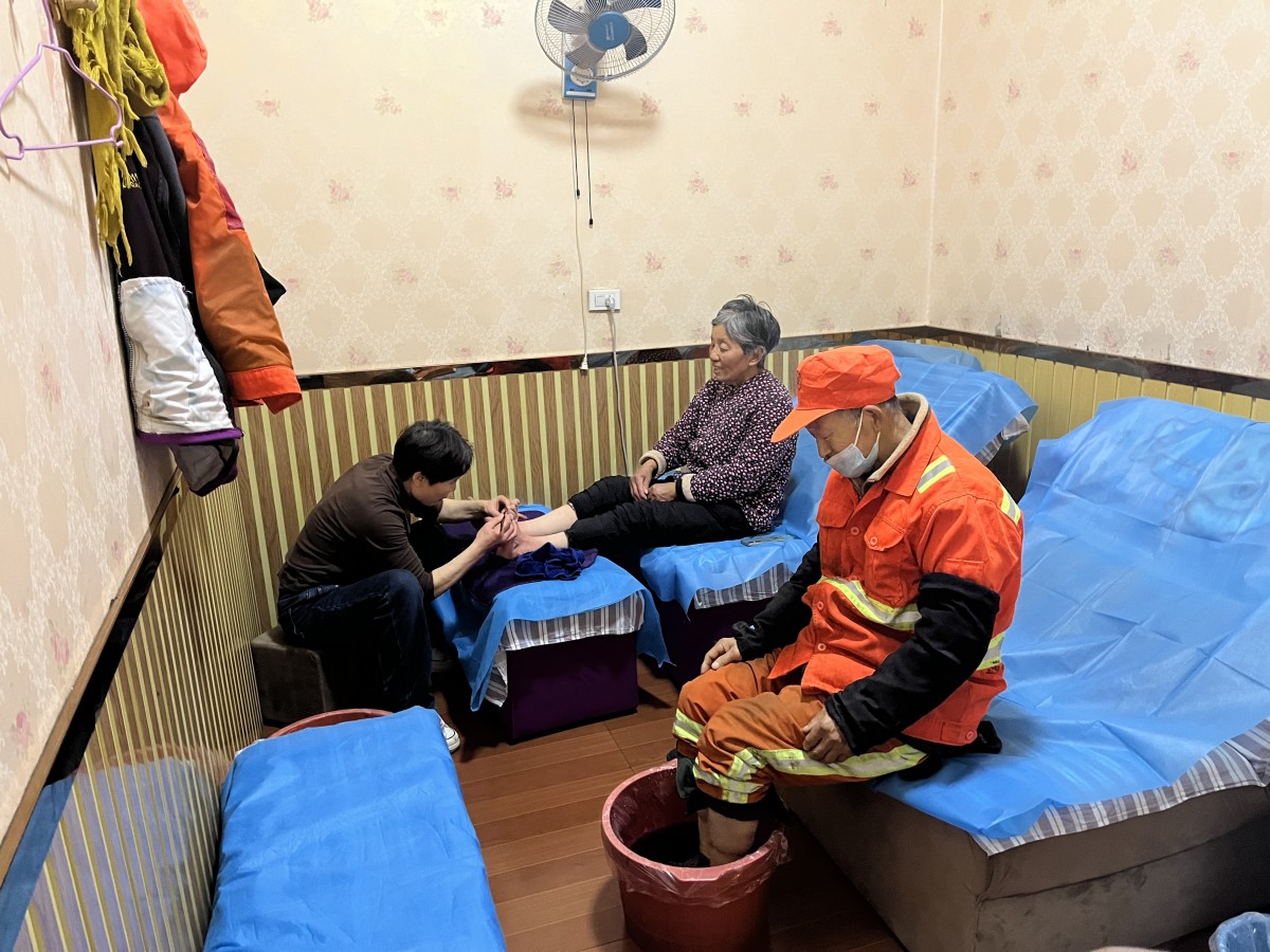 在店内柔和的灯光下,环卫工人纷纷脱下厚重的工作服,换上舒适的拖鞋,享受着难得的闲暇时光。“今天是我头一次进足浴店,店家免费提供热情服务,不仅双脚感到舒服,全身上下都有一股暖意!”环卫工人胡玉枝感慨地说。