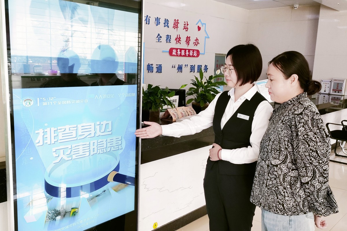 防灾减灾科普宣教活动中,该行采用现场宣传和阵地化宣传相结合的方式,将“5·12”防灾减灾日系列宣传工作落实落地。一是各营业网点利用LED大屏滚动播放宣传标语,通过员工渠道群、微信平台对防灾减灾安全知识和防范应对技能进行了广泛宣传;二是通过广告机、营业厅大屏播放防灾减灾救灾知识宣传片,让员工、客户更深入地了解防灾减灾知识,使大家都树立起安全意识;三是全员通过利用班后时间进商户、进社区,向广大客户科普火灾、洪涝、地震等灾害自救常识,切实提高灾害“早排查、早预警、早行动”能力。