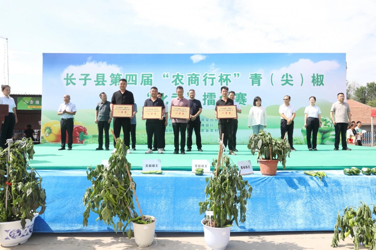 山西科技新闻网讯:(通讯员 王雪瑶 郭晓俊) 盛夏丹朱,“椒”魁竞秀。7月3日,长子县在丹朱镇大李村乐丰种植农民专业合作社举办第四届“农商行杯”青(尖)椒“比武”擂台赛。长子县人大常委会副主任胡红星、副县长张海江、县政协副主席陈纪红出席,山西农业大学园艺学院副院长、副研究员柴文臣等应邀出席,来自全县从事青(尖)椒种植的个人、农业合作社、农业公司等带着各自精心培育的青(尖)椒前来同台竞技、一决高下。