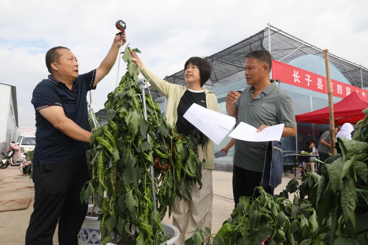 “我们惠民公司每年都参加青(尖)椒‘比武’擂台赛,和往年比起来,今年明显感觉竞争更激烈了,大家带来的新品种让人眼前一亮。这个比赛办得很有意义,不光能让我们同行们凑一块儿交流学习、不断创新,还能更好地宣传咱们长子的青(尖)椒,让青(尖)椒产业越来越火。”获得尖椒“椒王”一等奖的王云高兴地说。