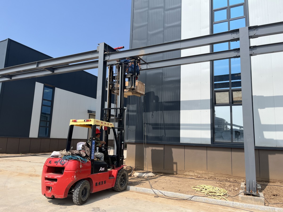 7月15日,记者在施工现场看到,施工人员正有条不紊地进行管道焊接与室内装修,一派紧张有序的施工景象。截至目前,三号车间已完成钢架结构,正在进行防火涂料施工;四号车间正在进行地面硬化,月底前进入设备安装阶段;研发中心外墙保温和门窗安装也在同步推进,预计项目今年8月底可完成全部土建工程,9月可进入试生产阶段。