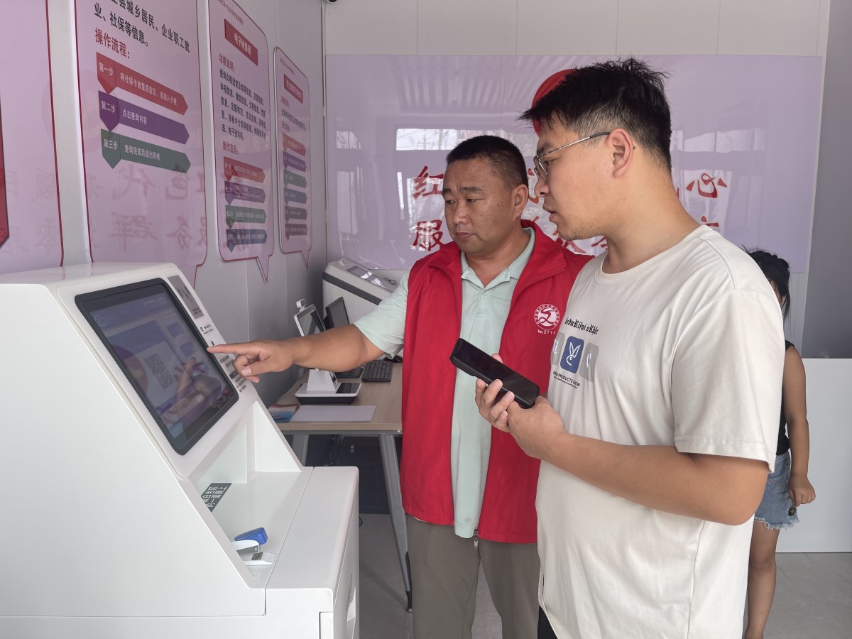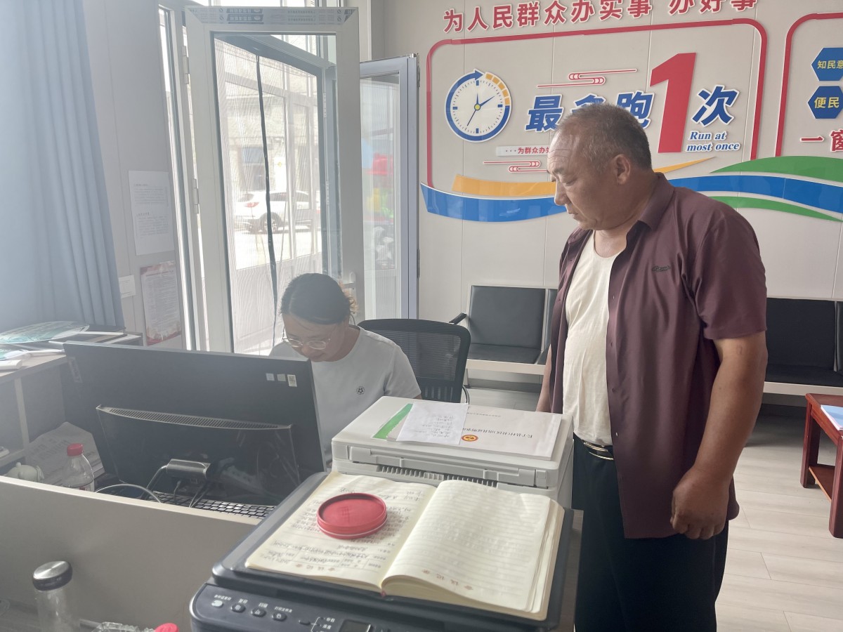 8月5日,在大堡头村党群服务中心内,村民常保旭在工作人员全程指引下,短短几分钟便完成了养老保险手续办理。“以前,咱们老百姓为了开一个办事证明,经常在村上和县上两边来回跑,费老大劲,事情也办不好。现在村里为我们梳理了办事流程,知道该去哪里、找谁办事,事情只跑一趟就解决了。”