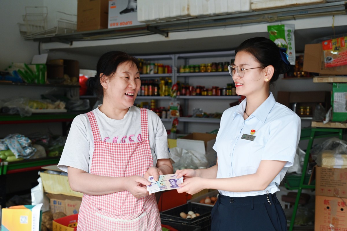 为了把服务做细做精,工作人员提前与商户对接,明确所需零钱面额、数量及上门时间。针对早餐店7点前需零钱的需求,工作人员每天提前1小时上门;给便利店多备1元、5角小额零钱,给社区超市搭配5元、10元面额,精准匹配不同商户的经营场景。上门兑换时,工作人员不仅把足额零钱清点清楚,还顺手帮商户解决“附加难题”,手把手教老年商户用手机查收款码账单,提醒账户资金安全注意事项,真正做到让商户一次都不用跑,就能解决多重金融需求。