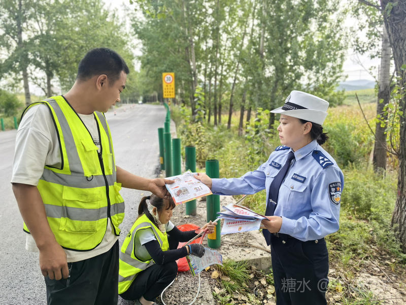 活动中,宣传民警用通俗易懂的语言,重点向施工人员讲解了路面施工过程中应该注意的事项,要求施工人员严格按照规范做好安全警示及个人防护。其次,宣传民辅警又结合身边的典型交通事故案例,分析讲解了事故发生的原因,提醒大家在做好安全防护的同时,自觉抵制交通违法行为,不酒后驾车、驾驶车辆应系好安全带、不超员超载,自觉遵守交通法规。