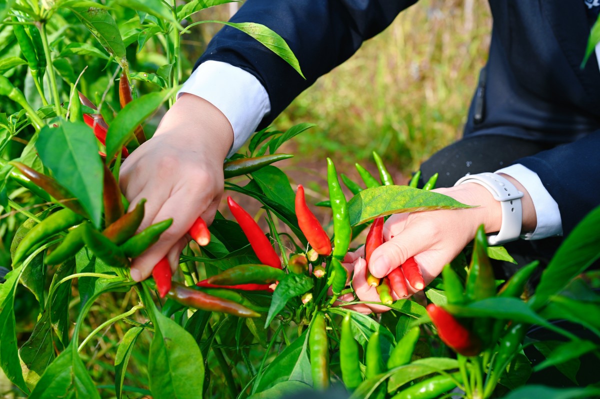 活动现场,金黄的玉米挺立田间,穗穗籽粒饱满;藤蔓上垂挂的黄瓜翠绿鲜嫩,西红柿红艳欲滴,青椒与茄子点缀其间……勾勒出最质朴的田园诗意。员工们自发分成“收割组”“采摘组”,分工协作却又其乐融融,他们有的手握镰刀,弯腰割下玉米秆,再熟练地剥去苞叶;有的蹲下摘西红柿,有的小心拨开藤蔓找黄瓜,偶尔还会因发现“隐藏”在叶间的大茄子而欢呼;有的则一边挑选新鲜的蔬菜现场清洗品尝,一边交流着“自家责任田”的种植心得。