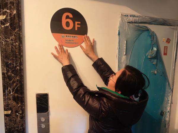 从1层到顶层,大家逐层定位粘贴,将一个个醒目的楼层牌“安”在电梯口墙面上。“之前找楼层得靠数台阶,现在一眼就能看到,太方便了!”刚收房的张阿姨笑着说,这小小的牌子,让新家的“烟火气”又浓了!