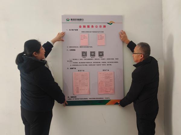 除了实用的楼层牌,工作人员还在小区里立起了金融服务公示牌,上面不仅有包片客户经理联络信息、线上金融服务二维码,还有信贷产品、零售产品的详细介绍内容,居民扫码就能查信息、办业务。