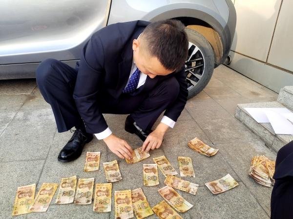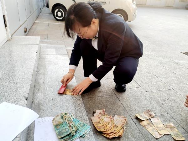 工作人员用把小红刷蘸点水顺着纸币纹理轻轻扫,粘在一起的钞券则用指尖慢慢捻开:力度轻了分不开,重了怕撕坏缺角的边;缺角的20元钞券沾着墙灰,得用指甲轻轻刮掉才露出 “20” 的数字;粘在50元上的棉絮丝,要拿刷子尖细细挑出来。刘大爷搓着手在旁边踱了两步,后来也蹲下来,眼睛跟着小红刷的动作转。