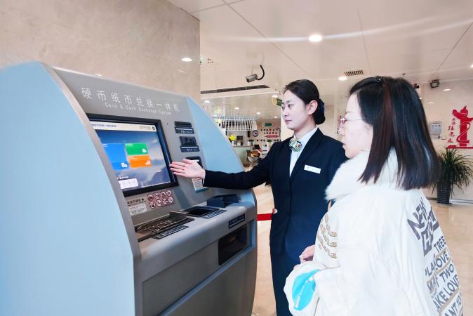 在该支行厅堂的醒目位置,配置了“硬币纸币兑换一体机”,客户无需长时间排队,即可使用先进的清点设备快速完成兑换。同时,专设的“零钞兑换”窗口各类券别储备充足,从业务受理到封装完成全程不超过5分钟,真正实现“即来即兑、立等可取”。