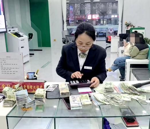 铺展纸币、按面额分类、逐沓点验、核对总数…… 二十分钟里,工作人员屏气凝神,把杂乱的零钞一一归整、核点清楚,原本零散的 “碎银”,很快变成了规整的纸币摞。噼里啪啦——手中的计算机一阵敲打,6772元,归整后的零钞得以快速存储到客户银行卡上,党交易凭证递到刘大哥手中时,局促彻底变成了笑意:“这堆‘麻烦钱’总算理顺了,你们这服务真是贴心得很!”