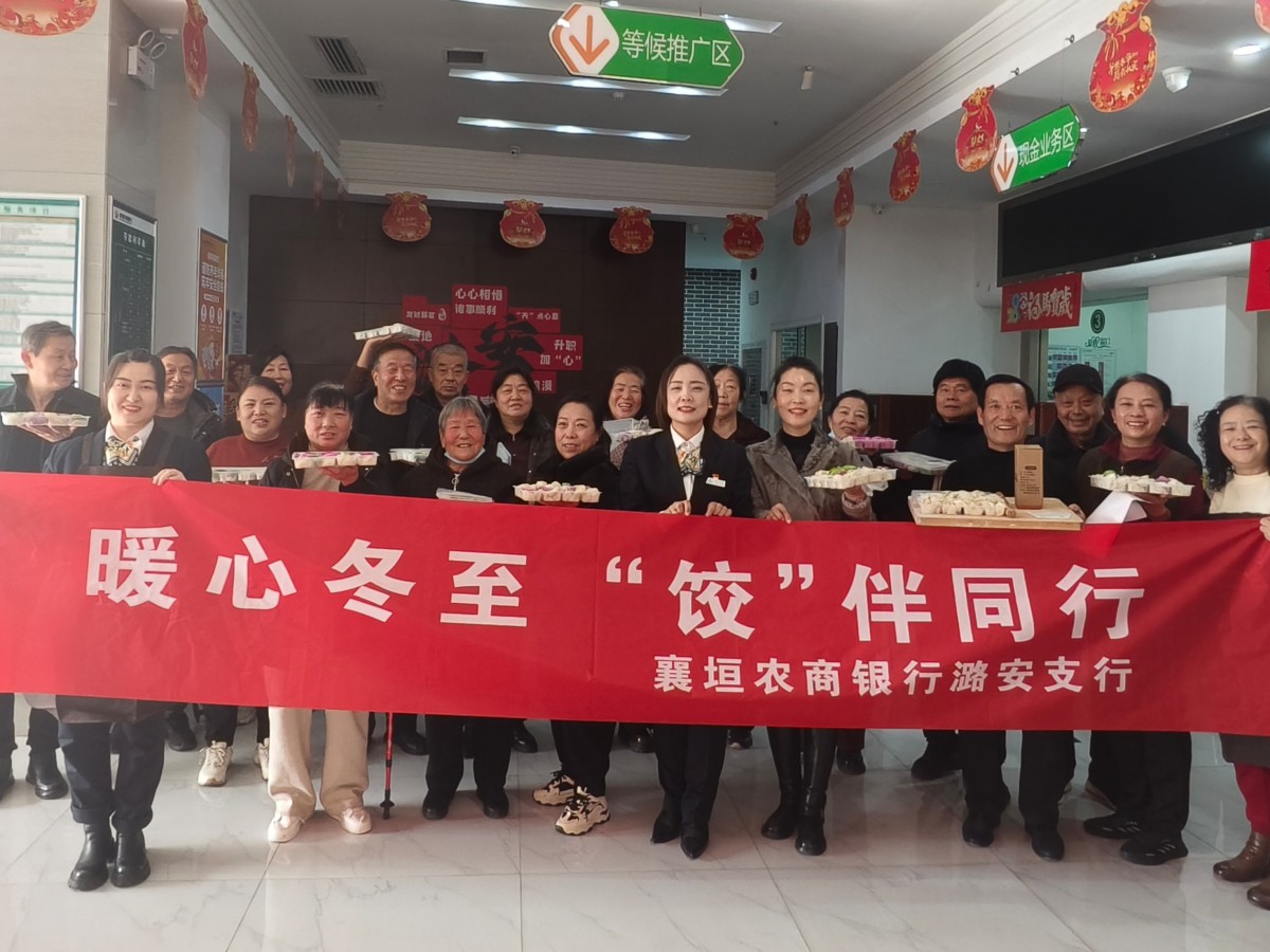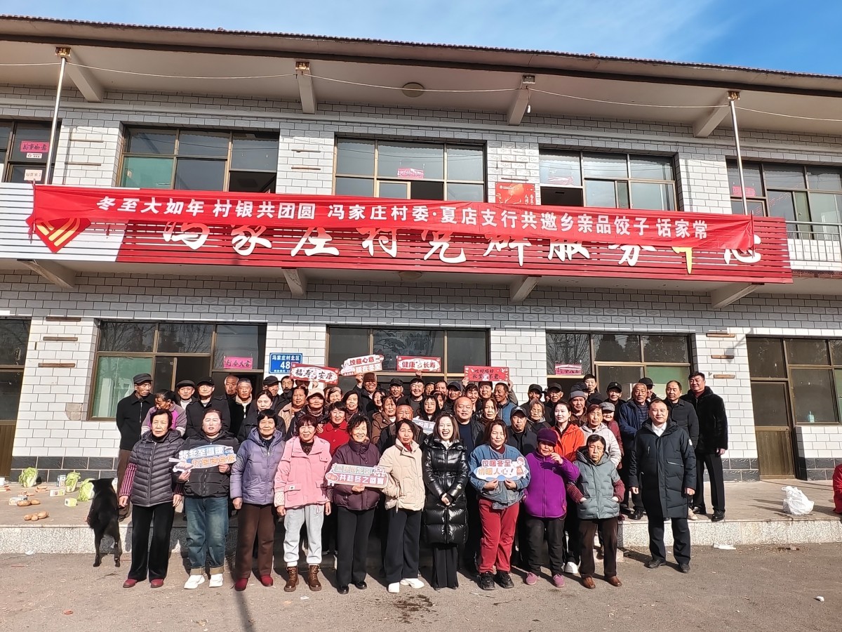 该行夏店支行联合冯家庄村村委会举办“冬至大如年,村银共团圆”活动。近两百位村民欢聚一堂,共包饺子、品粥、参与游戏,延续“老宅记忆”温情。活动以美食与互动拉近银村距离,夏店支行秉持“金融为民”初心,扎根乡土,提供有温度的服务。