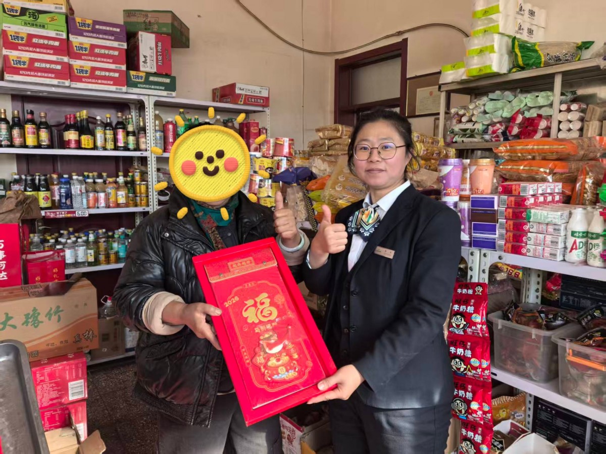 “每年都惦记着我们,太暖心了!”村里超市的刘大姐接过日历时笑容满面。这份看似简单的礼物,承载的是分理处始终如一的陪伴与关怀。