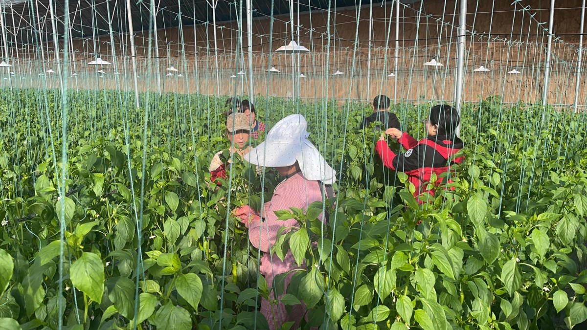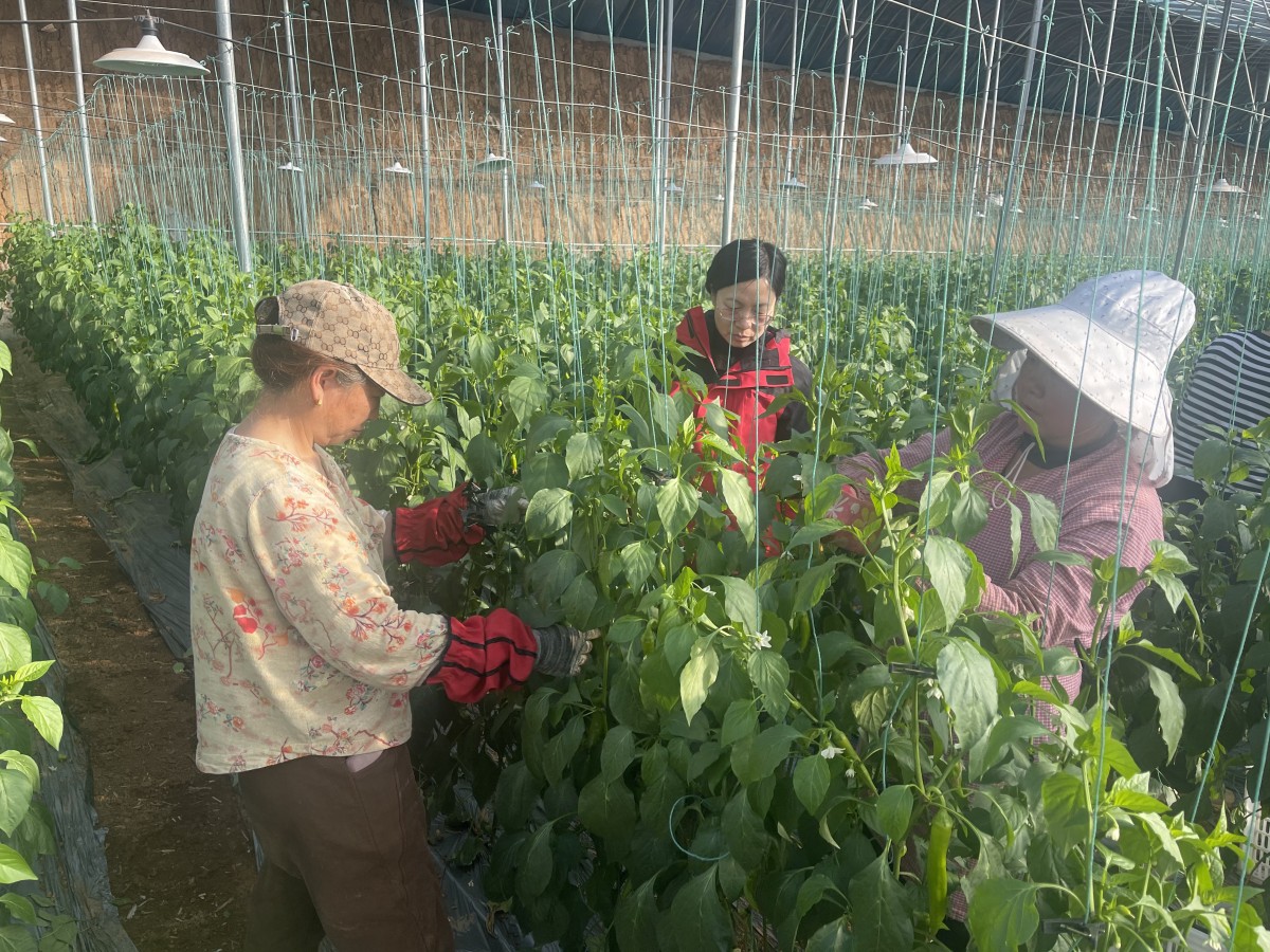 在丹朱镇大刘村阳光农业园区青尖椒大棚内,长子县农业农村局高级农艺师张玲霞向种植户手把手传授采摘、整枝的实用技巧,同时结合天气变化,细致讲解低温环境下的大棚管护要点。