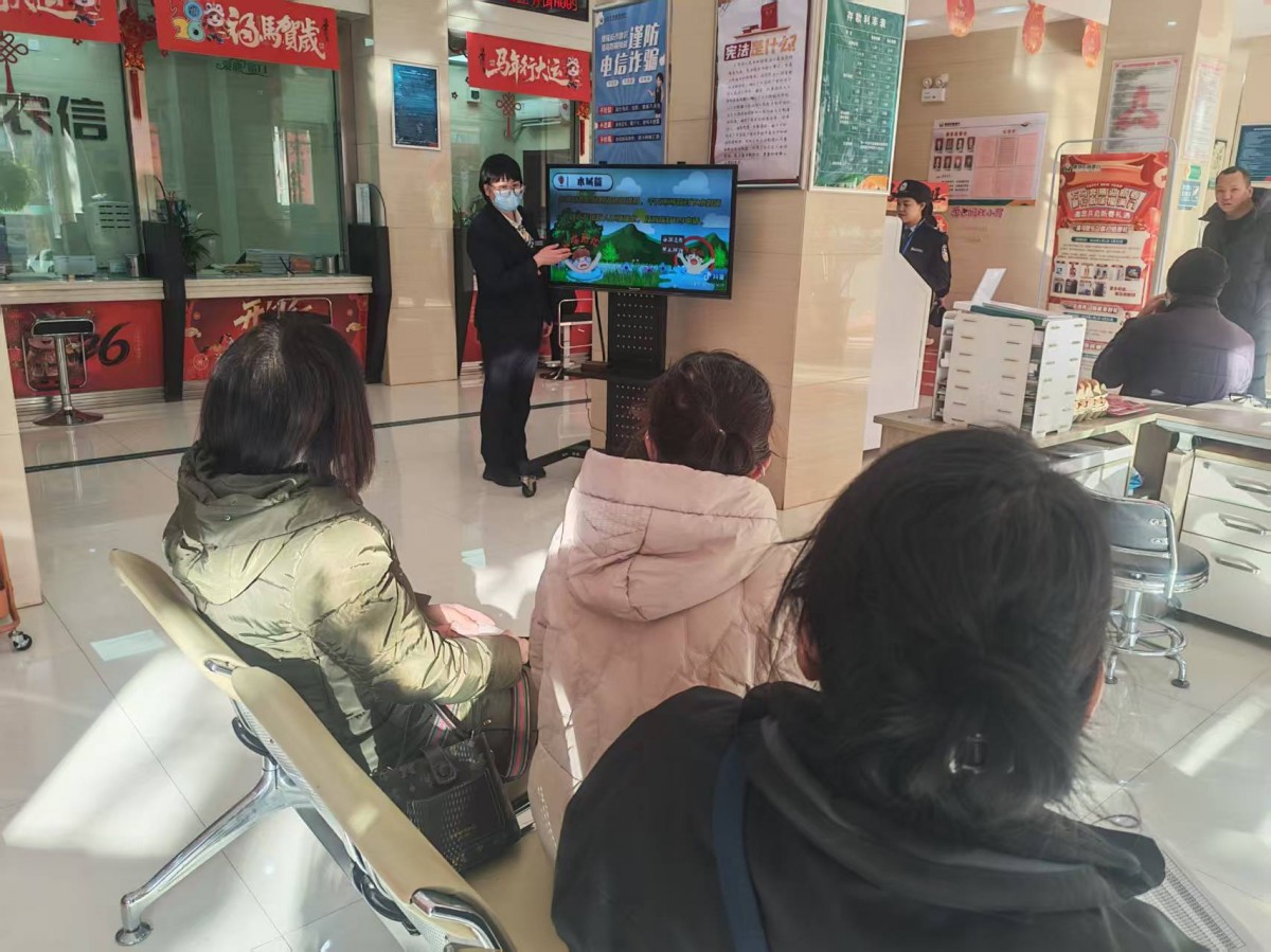 作为宣传教育主阵地,长治市襄垣农商银行各网点精心营造浓厚宣传氛围,在厅堂醒目位置设置警示标语,张贴宣传标语,摆放宣传手册;利用厅堂电视屏幕循环播放防范非法集资、电信网络诈骗等科普短视频,依托LED显示屏,滚动式播放“非法集资是陷阱,高利保本别相信”警示标语,让群众在办理业务过程中潜移默化接受风险教育。