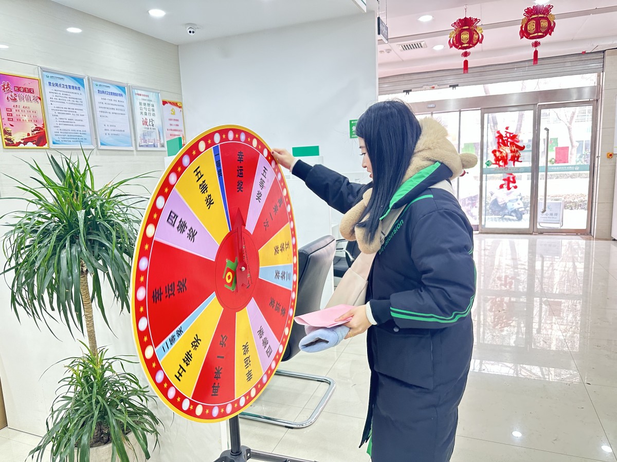在慈林、草坊、鲍店、碾张、营业部,则是另一番火爆景象。套圈圈或者投壶摊位前,瞄准、投掷,一声“套中啦!”引来满堂喝彩;大转盘吱呀转动,每一次“一等奖!”的惊呼都点燃一片欢笑。这些简单至极的游戏,拥有神奇的魔力,让平日严肃办理业务的客户瞬间焕发童真,笑容比手中赢得的奖品更加灿烂夺目。