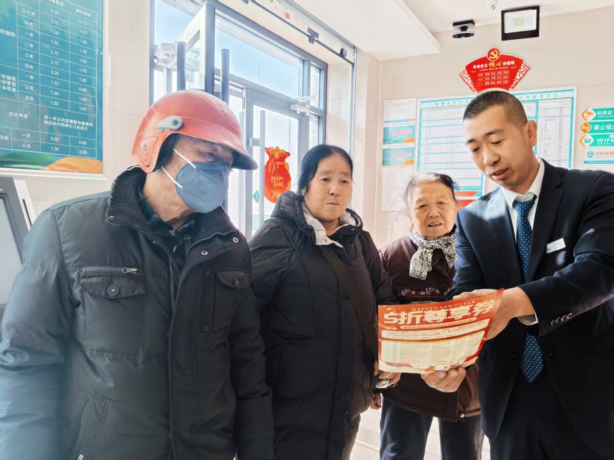 等候的客户们一下子就被吸引住了,原本有些枯燥的等待时间变得生动起来。戴着棉帽的大爷把身子往前凑了凑,眯着眼睛仔细看折页上的内容;几位结伴而来的阿姨围在一起,你一言我一语地盘算着采购计划;还有戴着安全帽的大叔,也停下了刷手机的动作,听得格外认真。大家的眼神里满是专注,生怕错过任何一个福利信息。