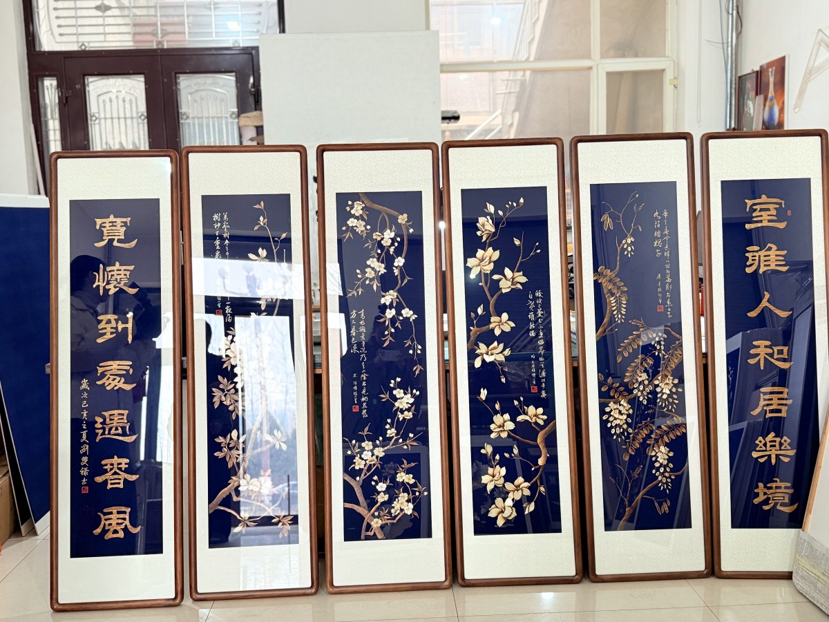 “我们的作品均为纯手工制作,常常供不应求,不少客户提前两三个月就下单预订。产品不仅畅销国内,还远销香港、新加坡以及美国,市场反响挺好。”胡广胜介绍,“春节前家装需求旺盛,像这套《四季如春》系列销量十分可观。过年期间走亲访友,小幅鱼、荷花题材作品格外受欢迎——鱼寓意‘年年有余’,荷花象征‘和和美美’,吉祥又雅致,十分贴合节日氛围。”